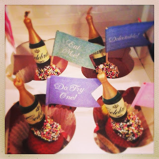 These little champagne bottles are actually candles...they were from the cake decorating department in Tescos. They make really effective embellishments and, of course, can be lit for the occasion!